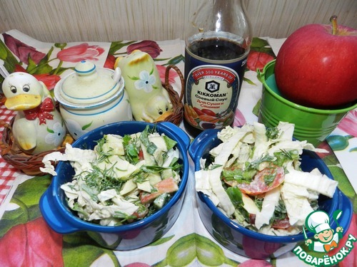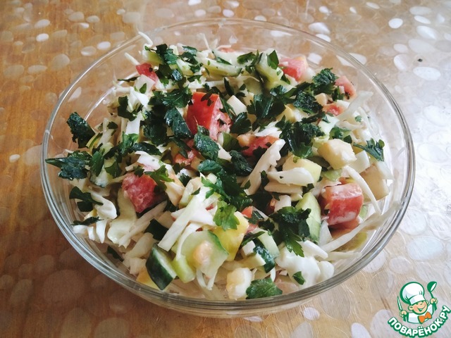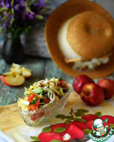 Полезный овощной салат с яблоком, которым приятно похрустеть летним вечерком после рабочего дня! Готовится элементарно!