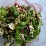 Я полила лимоным соком. Хорошо всё перемешать и дать салату настояться. Так как это грузинская кухня, добавила и хмели-сунели. Кому как по вкусу.