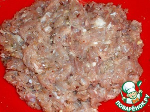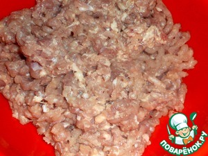 Прокрутить мясо через мясорубку с крупной решеткой.