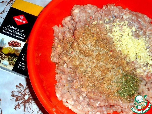 Для колбасок я использовала специи Forester для маринования курицы. Они прекрасно сбалансированы и имеют потрясающий вкус и аромат.