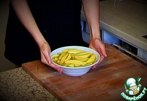 Картофель очистить помыть и порезать. Сварить в воде с добавлением соли до полуготовности.