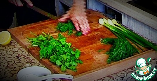 Зелень частично крупно порезать, частично оставить целой для сервировки.