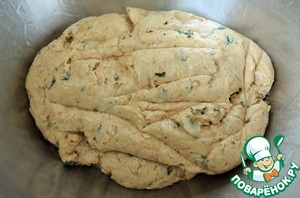 Тесто накрыть пленкой, оставить на 30 - 40 минут, до увеличения в два раза.