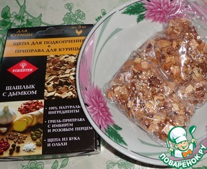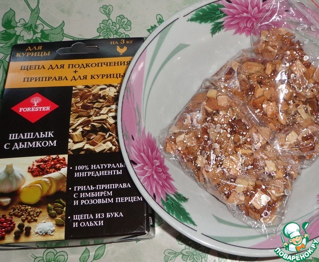 На 30 минут замочить в воде щепа для подкопчения, они состоят из бука и ольхи.
