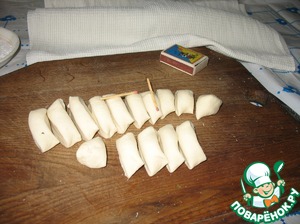 Раскатываем тесто быстро и по-простому. Безотходно. Отрезаем примерно треть или четверть теста и катаем колбаску.