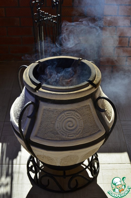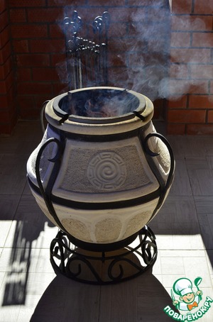 Когда тандыр побелеет внутри от сажи, значит он готов к готовке! -