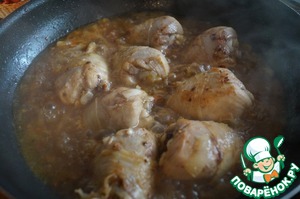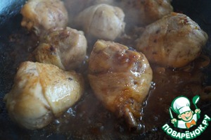 Когда курица станет мягкой, вода должна выпарится и в сковороде образуется соус.