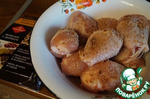 Куриные голени промыть и натереть приправой для курицы ТМ Форестер. Оставить на 30 минут.