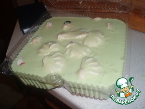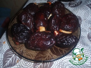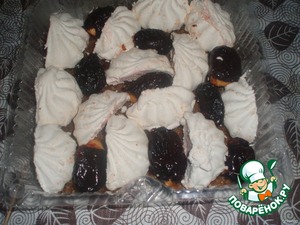 Зефир делим на части и укладываем в форму. В свободное место кладeм чернослив.