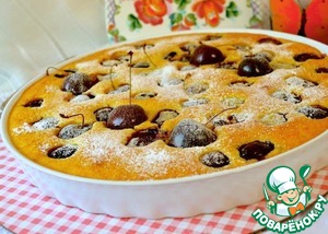 Форма у меня 20 см, черешню уложила плотно, теста было много, может поэтому я выпекала клафути около 1,5 часов, 15 минут при 180, потом час при 150 и еще минут 15 при 160. Миндальную муку заменила пшеничной, но добавила миндальной эссенции для аромата. Позволила себе вольность: я одновременно просеяла муку, соль, сахар и потом одновременно добавила туда яйца, масло и молоко. Перемешала все венчиком и потом уже бережно ввела взбитые белки. Все получилось. Очень красивый пирожок! Омлет не напомнил. Вам большая благодарность за рецепт!