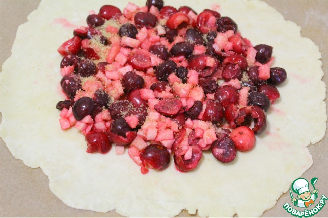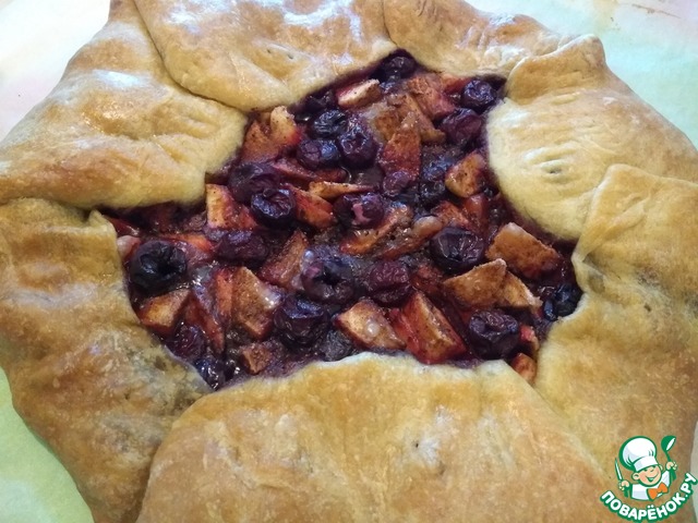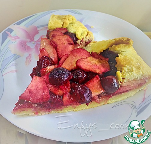 Просмотрела рецепты галет, но такой не встретила, в основном рецепт теста мука-масло-ледяная вода, мой рецепт отличается, поэтому решила предложить его на ваш суд. В нашей семье очень любят такую галету с разными начинами - и сладкой и с капустой. Этот вариант летний - черешня в выпечке немного пресновата, поэтому я добавила яблоки и свежемороженую вишню - получилось очень сочно и вкусно в сочетании с хрустящей и нежной основой.