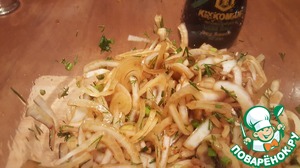 Достаточно тонко нарезать лук. Если берёте обычный репчатый лук, нарежьте и обдайте его кипятком.