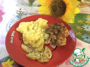 Залить содержимое сковородки куриным бульоном, в соус вмешиваем деревенскую сметану, которая мало чем отличается от магазинного сливочного масла:)) Я отважилась на одну столовую ложку. Туда же добавила остатки маринада для шашлыка, что-то светлое с чесноком. В духовку поставила на 50 минут, 220 градусов. Запах натурального маслица, смешанный с чесноком и распаренным мясом - непередаваемый. Котлетка при малейшем прикосновении рассыпается на кусочки запеченной индейки... Рекомендую, очень вкусно.
