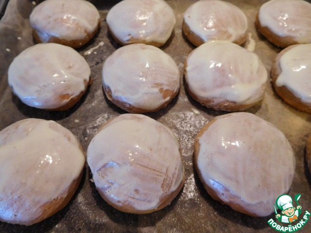 Достаем из духовки наши пряники (они уже поднялись и почти готовы), смазываем их глазурью и отправляем обратно в духовку на 10 минут.