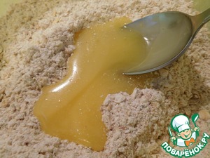 После отправляем туда мед и кефир, тщательно перемешиваем.