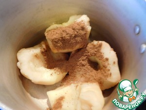 Перемалываем яблоки в блендере с 1/3 ложкой корицы и 1 ч. л. сахара.