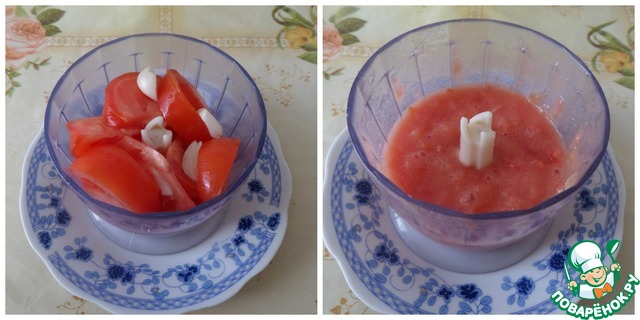 В чашку выкладываем томатно-чесночную массу.