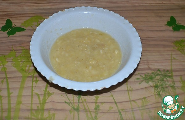 Начинка: бананы размять в пюре, добавить лимонный сок и сахар. Перемешать.