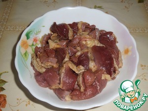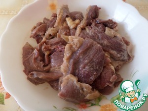 Выкладываем нарезанное мясо в чашку.