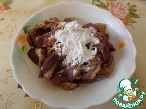 К маринованному мясу добавляем крахмал.