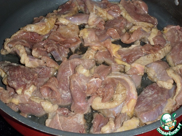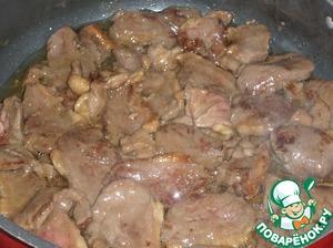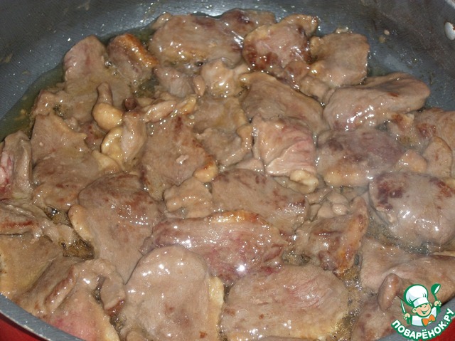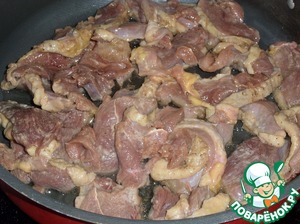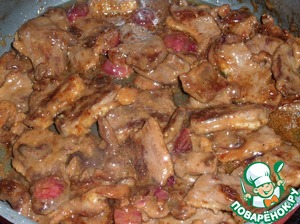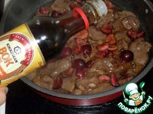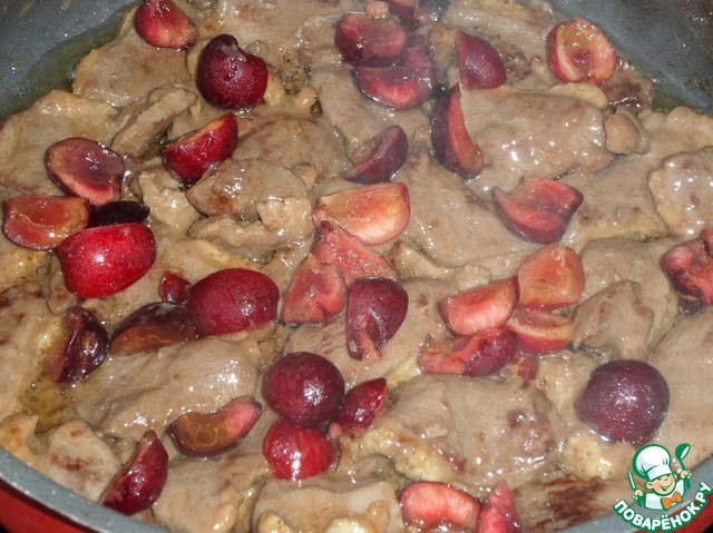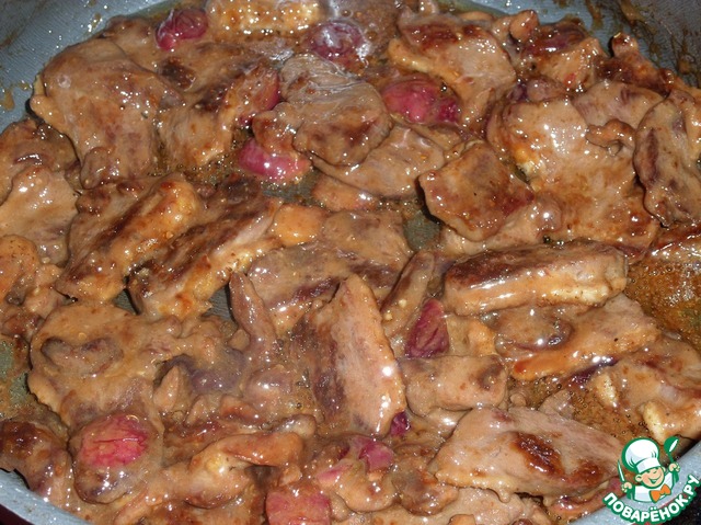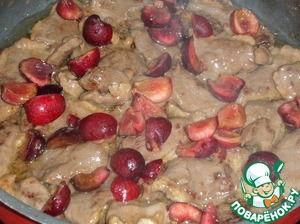 Ягоды добавляем к обжаренному мясу.