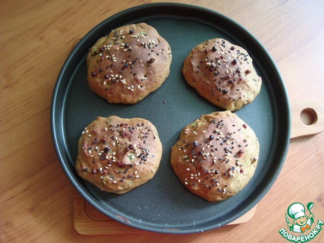 • К крылышкам за 15 минут сделала ржаную, луковую лепёшку. Вернее, хотела сделать одну, а выложила 4 шт небольших. На вкус это не повлияло.