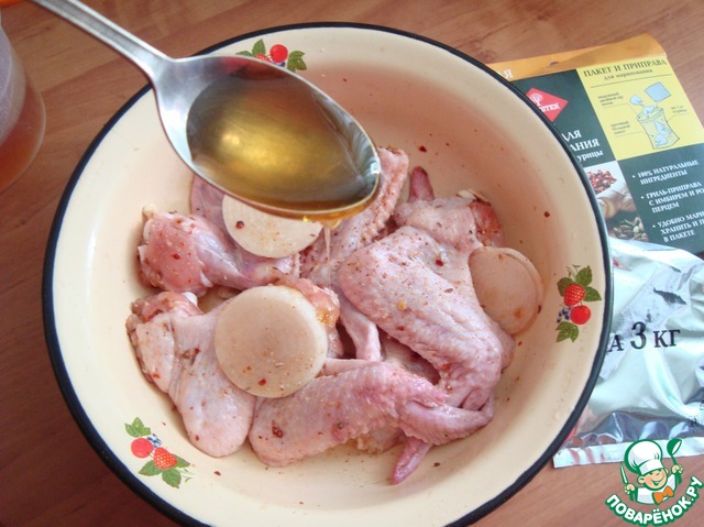 Крылья помыла, обсушила и засыпала приправой.