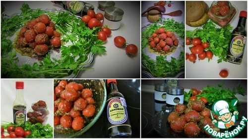 Рецепт очень простой и легкий. Идеальная и быстрая закуска для пикника. И уж если я своего пятилетнего привереду не могу за уши оттянуть от помидоров, то сразу с уверенностью можно сказать, что в восторге будет каждый. Помидорки могут быть к шашлыку или просто оригинальная замена привычному овощному салату. Аромат и вкус маринада просто потрясающий. В общем, очень рекомендую.