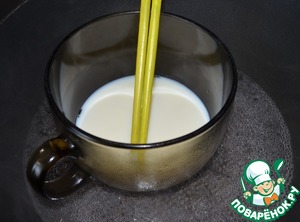 Замочить в молоке желатин, через 10 минут нагреть его на водяной бане, до растворения. НЕ КИПЯТИТЬ!