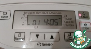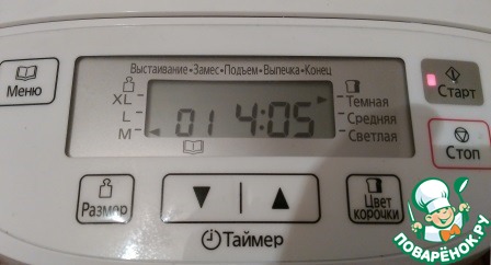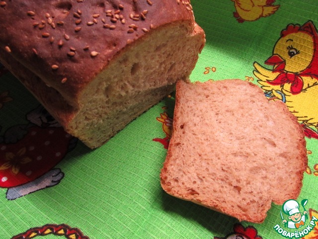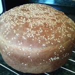 Выставляем базовый режим основного хлеба. За 5 мин. до выпечки, верхушку смазать простой водой и посыпать кунжутом.