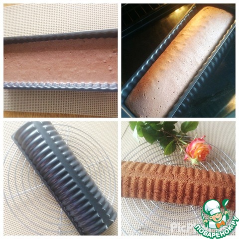 По истечении времени, форму с испеченным бисквитом переворачиваем на решетку и полностью остужаем. Аккуратно вынимаем бисквит из формы (я это сделала при помощи маленькой спатулы, т. к. форма ребристая). Если форма прямоугольная, достаточно пройтись ножом вдоль стенок и вынуть бисквит, но аккуратно. -