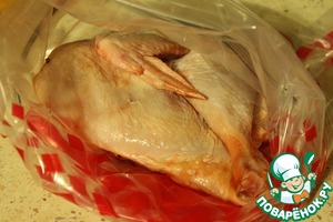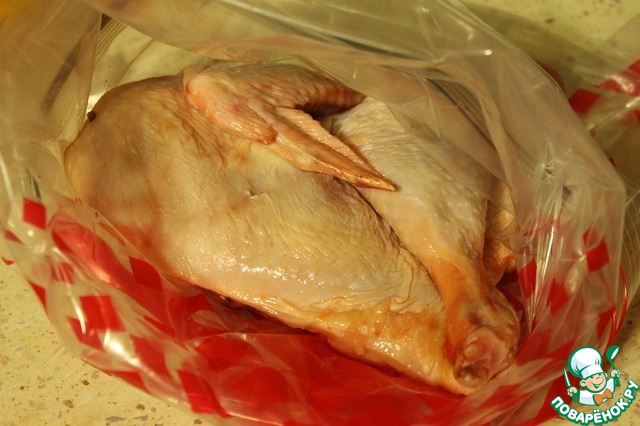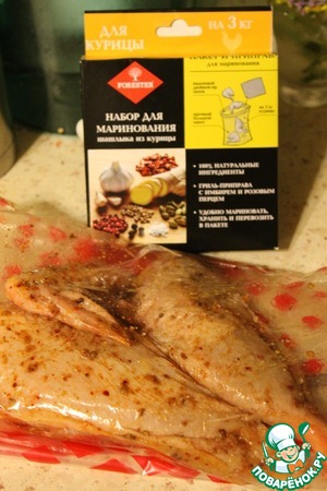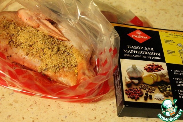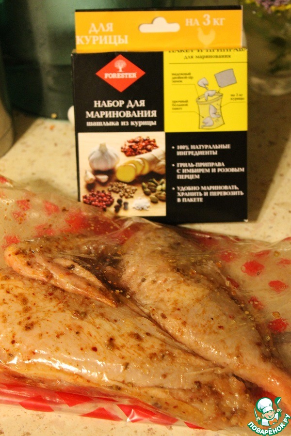 Курицу сложить в пакет для маринования ТМ FORESTER.