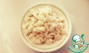 Картофель почистить и нарезать кубиком, как вы всегда режете для окрошки, я режу мелко.