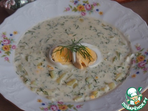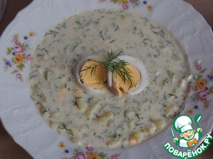 Оставшиеся два яйца порезать кружочками. В каждую тарелку положить два кружочка яйца и украсить веточкой укропа. Это очень вкусно!