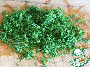 Большой пучок укропа мелко порезать. Количество порезанного укропа должно составлять половину стакана 250 мл.