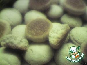 Выпекаем на противне, ничем не смазанном, при температуре 180 град. 10-15 минут, до слегка бежевого цвета.