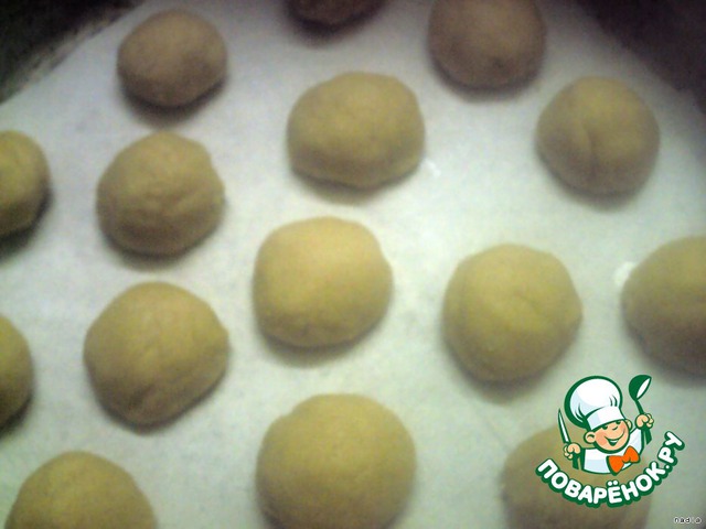 Быстро формируем очень маленькие печеньки (размером с фундук): выпеченное печенье на вкус очень мучнистое и большое печенье тяжело будет съеть, а маленькое поедается с супер скоростью. Моя ошибка, я сделала большое печенье в первый раз, а во второй - маленькое.