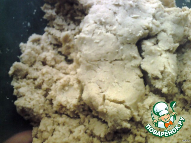 Замесить однородное тесто. Оно очень рассыпчатое и сформовать в шар проблемно.