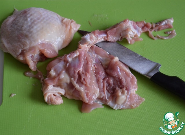 На каждое отбитое филе выложить по столовой ложке начинки.
