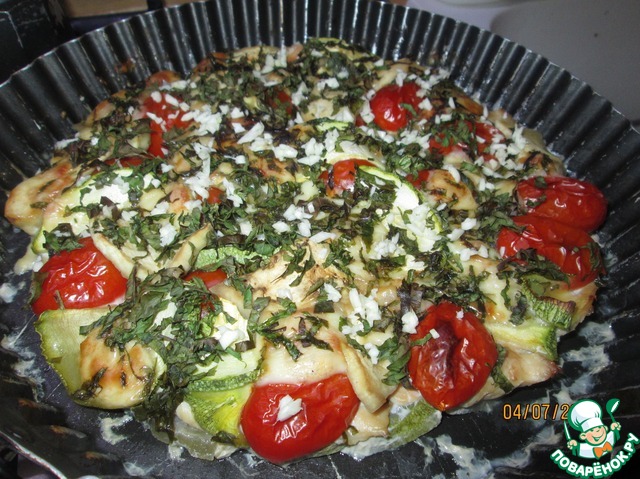 Форму для запекания, у меня 22 х 25см, хорошо смазать подсолнечным маслом.