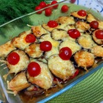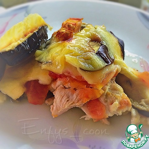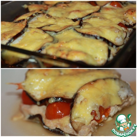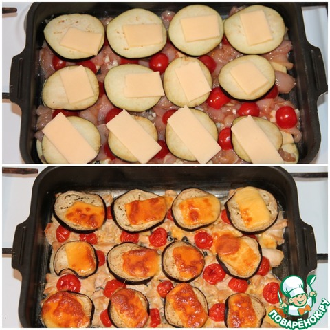 Рецепт «Запеченные баклажаны с куриным мясом»: