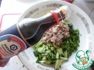 Сбрызгиваем растительным маслом и поливаем соевым соусом.