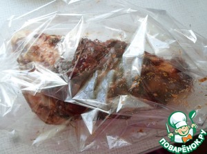 Затем кладем в пакет для запекания, туго завязываем и убираем в холодильник на 2 часа.