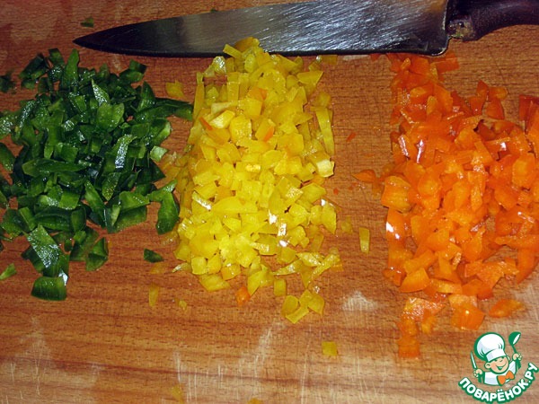 - Перец болгарский (небольших и лучше разноцветных) — 3 шт