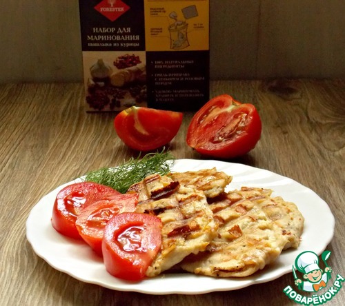 Очень простое блюдо, которое прекрасно подойдет для пикника. Жаль, сейчас у нас погода не для шашлыков. Но его можно прекрасно сделать и дома на электрогриле, что я и сделала. Получилось быстро, вкусно и нежно. Угощайтесь.