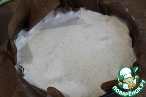 Разъемную форму на 20-21 проложить пекарской бумагой, которую смазать маслом.