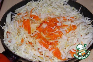 Капусту нашинковать, потушить по желанию с луком, морковью, томатной пастой.