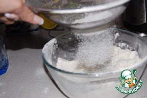 Когда дрожжи поднимутся до краев стакана, вылить в муку с маргарином. Замесить тесто.