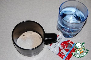 Сухие моментальные дрожжи смешать с теплой водой и сахаром.