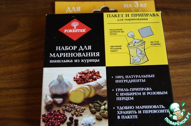 Набор специй для маринования курицы ТМ Форестер очень удачно подобран и включает в себя морскую соль, поэтому кроме вишни и специй, больше ничего не понадобится.